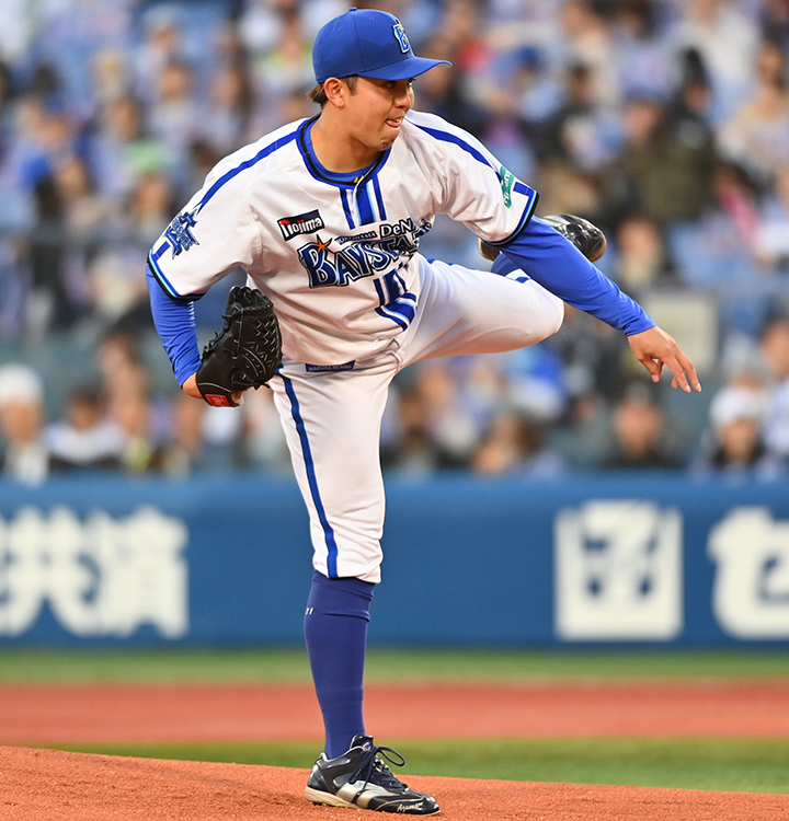 東克樹投手。高い制球力が武器ですが、4月12日のヤクルト戦では投げミスが多く、調子はイマイチのように感じられました。初回は二死二塁のピンチで四番・